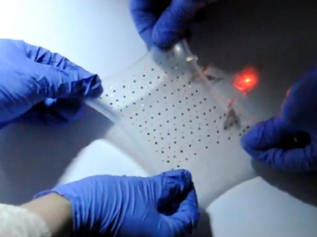 Huang ja Rogers ovat kehittäneet jo kuuden vuoden ajan joustavaa elektroniikkaa, jonka tavoitteena on ollut ennen kaikkea lääketieteellisten, ihon alle asennettavien laitteiden tekeminen. He kehittivät johdintekniikan, missä pienet, joustamattomat elektroniset osat on liitetty toisiinsa metallisin, joustavin johdoin, jotka pullahtavat ylöspäin ja antavat periksi, kun niitä väännetään tai puristellaan.